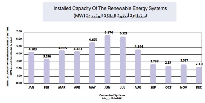 كما يتوقع أن تبلغ الطاقة المولدة من تلك الأنظمة سنوياً ما مجموعة (1,184) جيجا واط ساعة أي ما يعادلٍ %9.5 من كمية الطاقة المباعة من قبلٍ الشركة خلالٍ العام المذكور، كما يتوقع أن يتم ربط بقية الأنظمة خلالٍ العامين القادمين وذلك بعد انتهاء المشتركين من أعمالٍ تركيب تلك النظم.